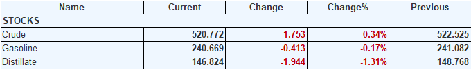 Коммерческие запасы нефти в США упали на -1.753 до 520.772 млн. баррелей. Запасы бензина упали на -0.413 до 240.669 млн. баррелей. Запасы дистиллятов упали на -1.944 до 146.824 млн. баррелей.