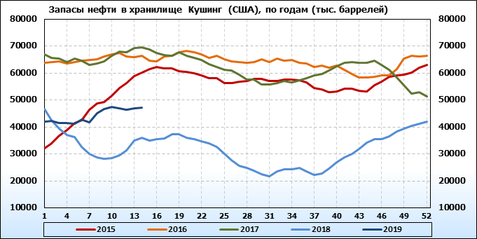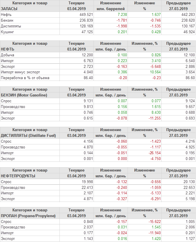 Изменение запасов нефти в США (институт API). Данные на 02.04.2019