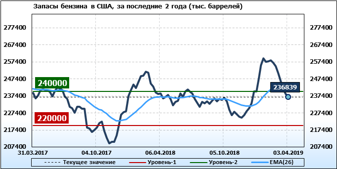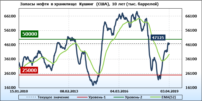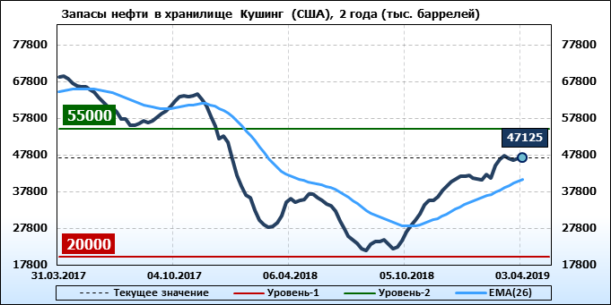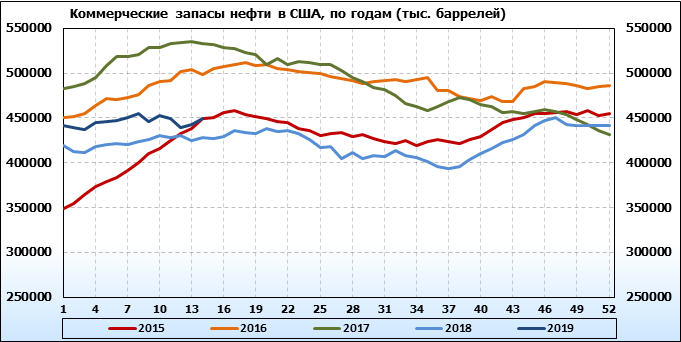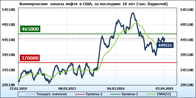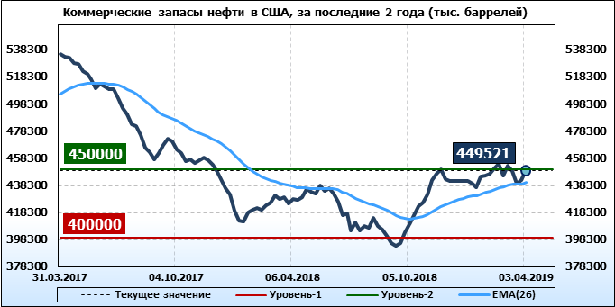 Коммерческие запасы нефти в США, EIA. Данные на 03.04.2019