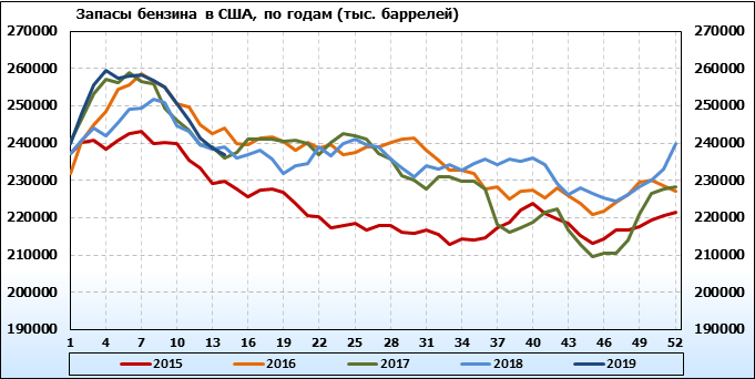 Эксперты, опрошенные агентством Bloomberg, ожидали уменьшения запасов нефти на 800 тыс. баррелей, снижения запасов бензина на 2500 тыс. баррелей и снижения запасов дистиллятов на 600 тыс. баррелей.