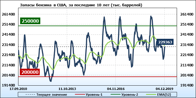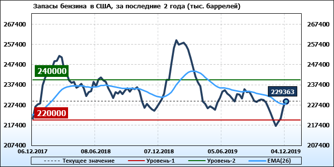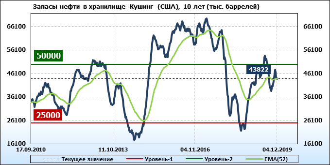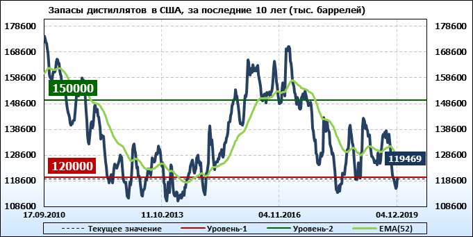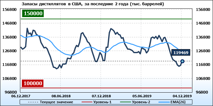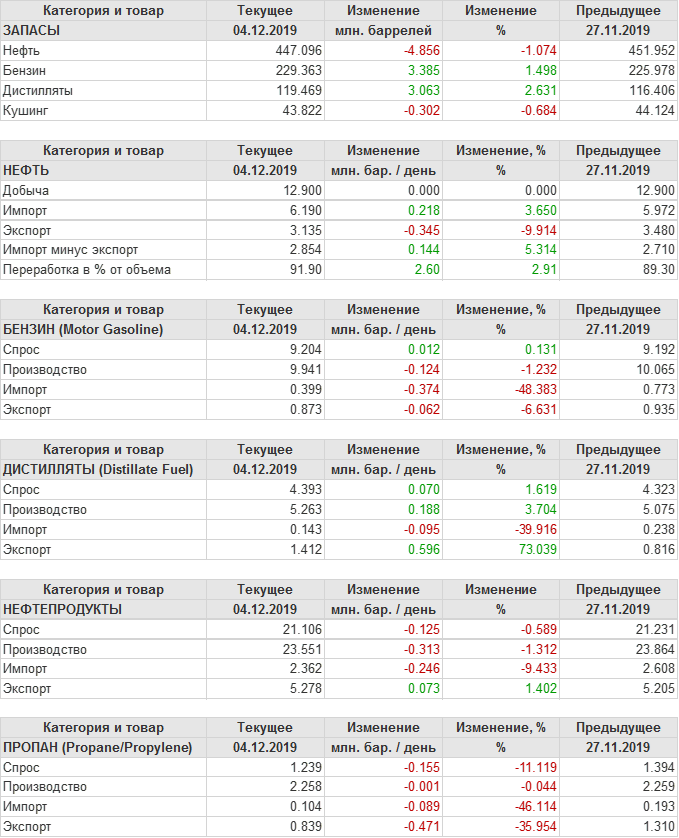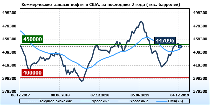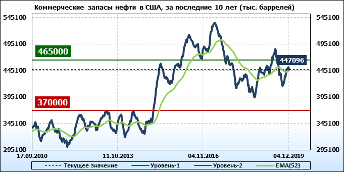 Коммерческие запасы нефти в США, EIA. Данные на 04.12.2019