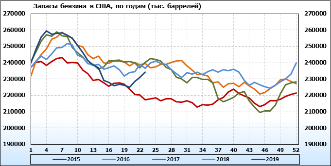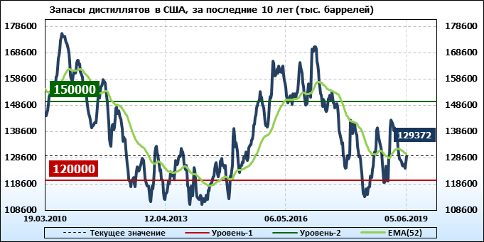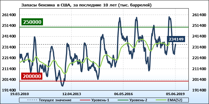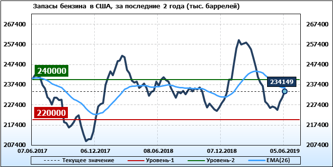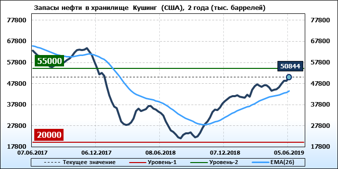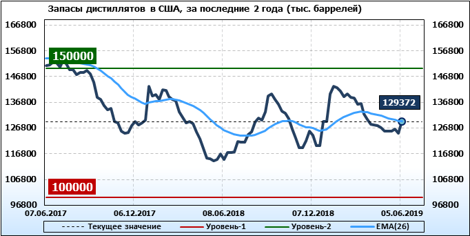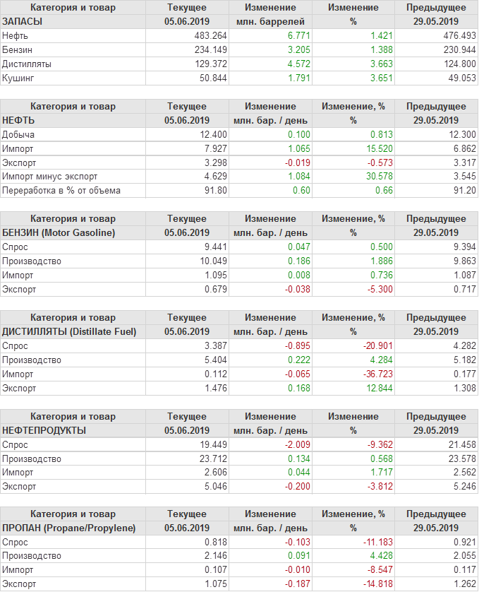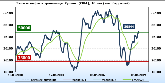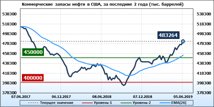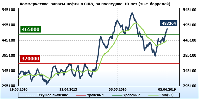 Коммерческие запасы нефти в США, EIA. Данные на 05.06.2019