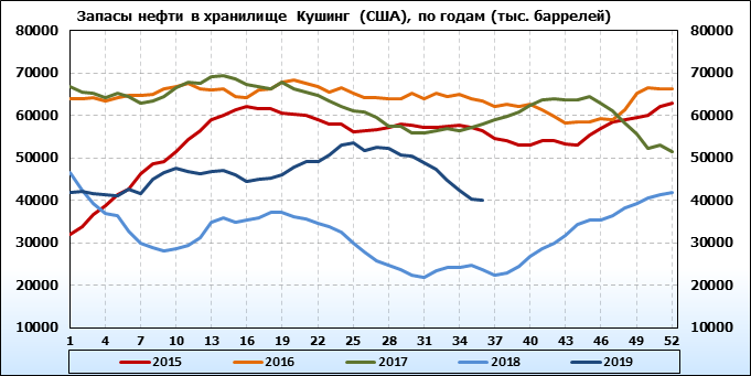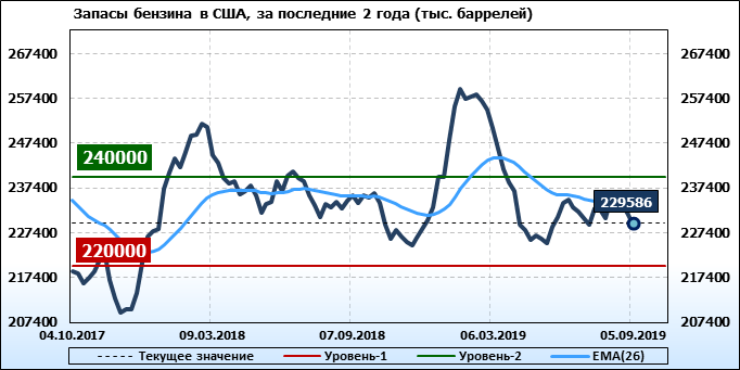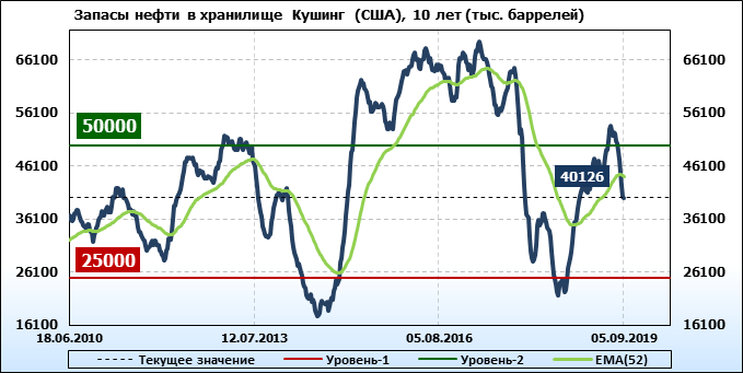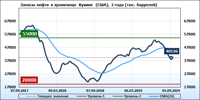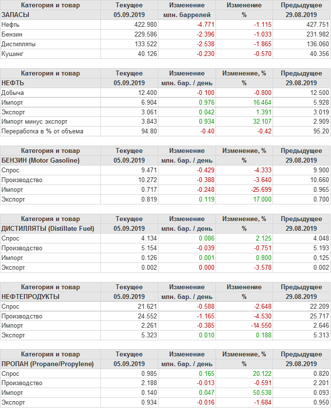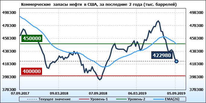 Коммерческие запасы нефти в США, EIA. Данные на 05.09.2019