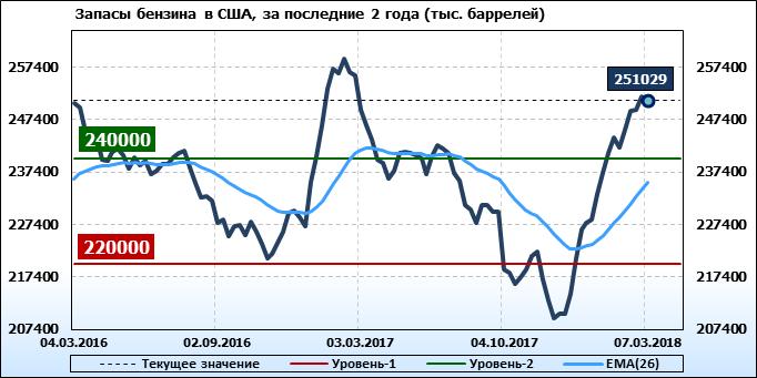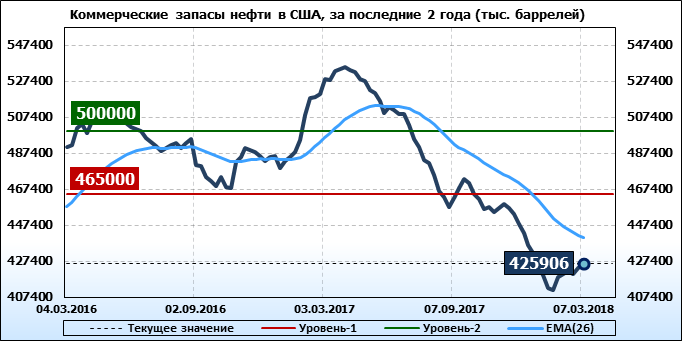 Коммерческие запасы нефти в США, EIA. Данные на 07.03.2018. Подробно