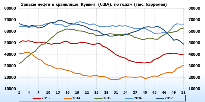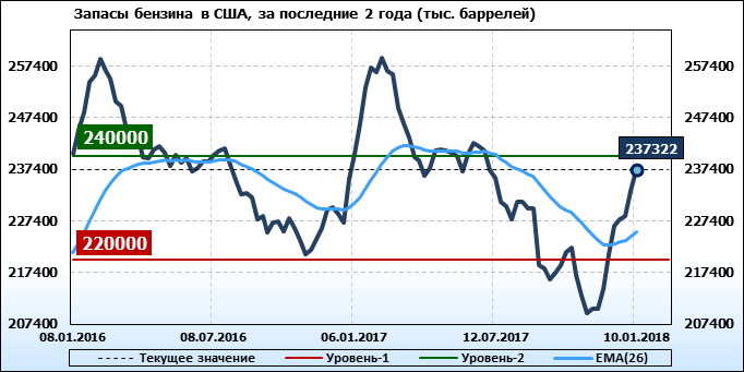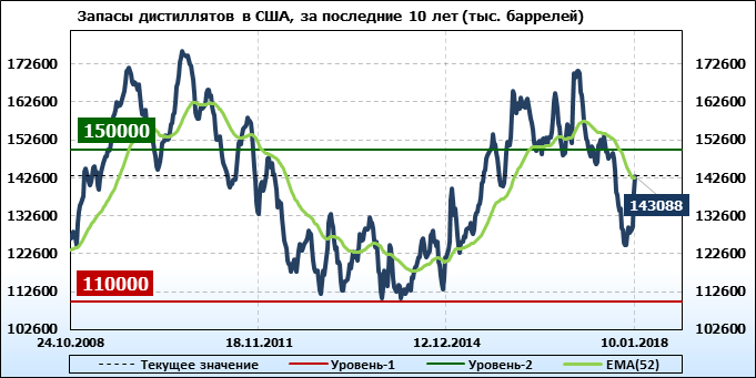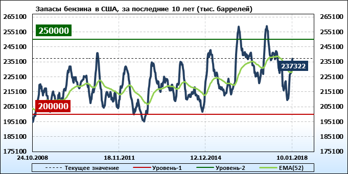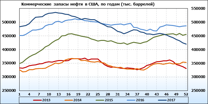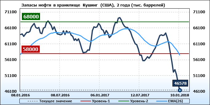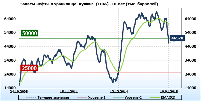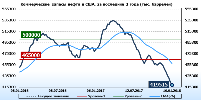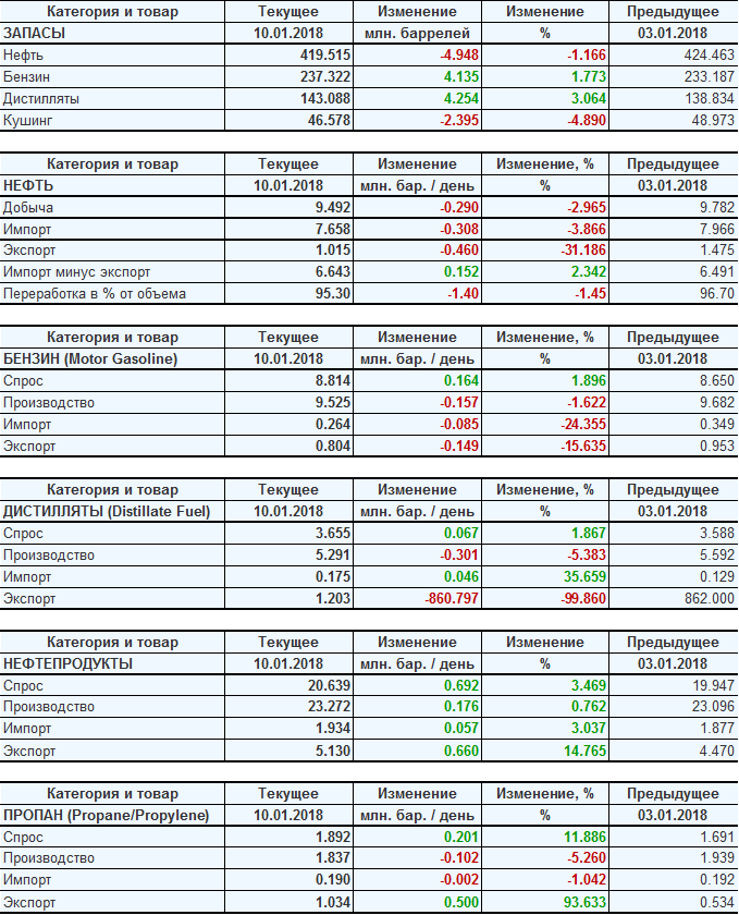 Коммерческие запасы нефти в США, EIA. Данные на 10.01.2018. Подробно