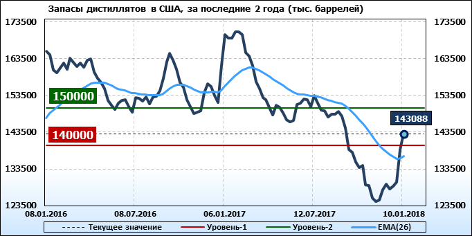 В результате вечером во вторник цена Brent впервые с 6 мая 2015 года пробила отметку в 69 долларов за баррель. Стоимость февральских фьючерсов на нефть марки WTI превысила 63 доллара за баррель впервые с 10 декабря 2014 года. Одной из причин послужили данные прогноза управления энергетической информации Минэнерго США, согласно которому средняя цена барреля Brent в 2018 году составит 59,74 доллара против 57,26 доллара в декабрьском прогнозе, а средняя цена WTI — 55,33 доллара (против предыдущего прогноза в 52,77 доллара за баррель). В среду стоимость нефти росла после публикации данных Американского института нефти (API) о запасах «черного золота» в США, закрепившись на достигнутых днем ранее рекордных уровнях.