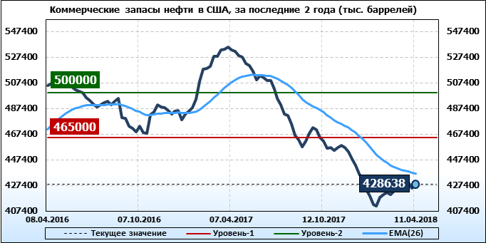 Коммерческие запасы нефти в США, EIA. Данные на 11.04.2018