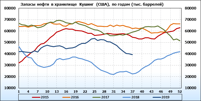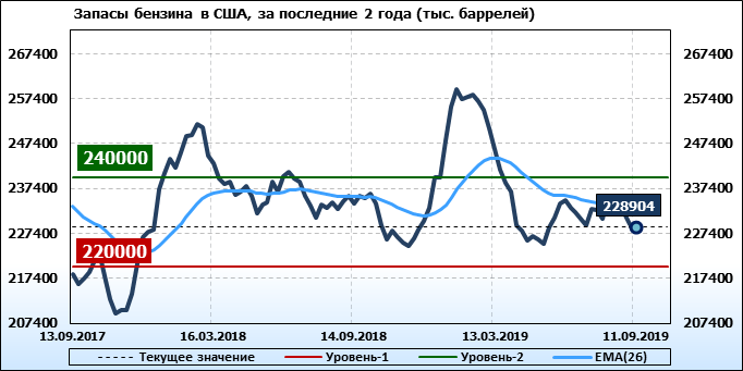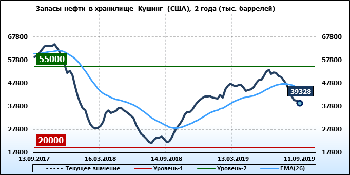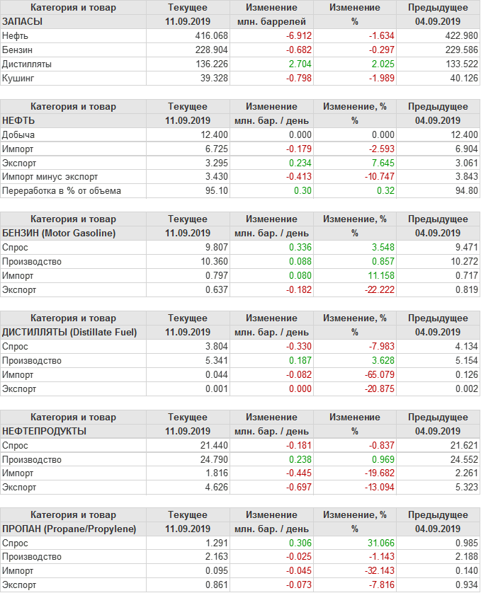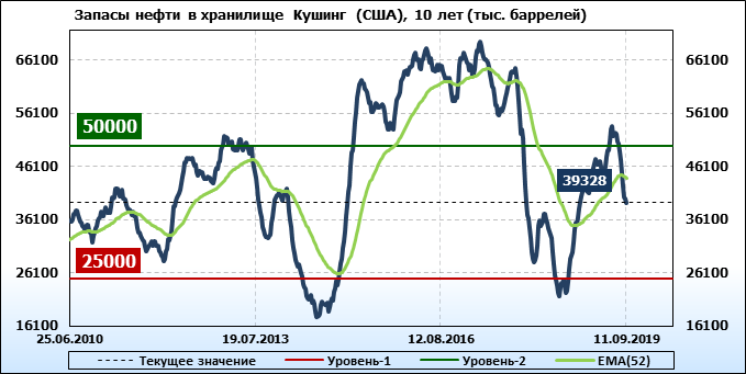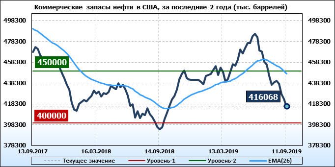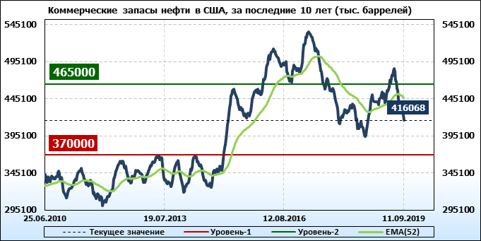 Коммерческие запасы нефти в США, EIA. Данные на 11.09.2019
