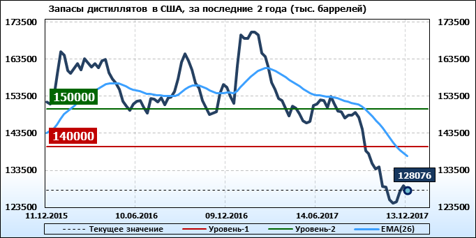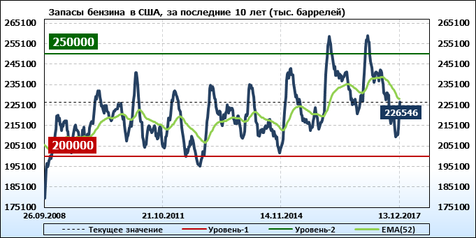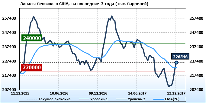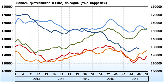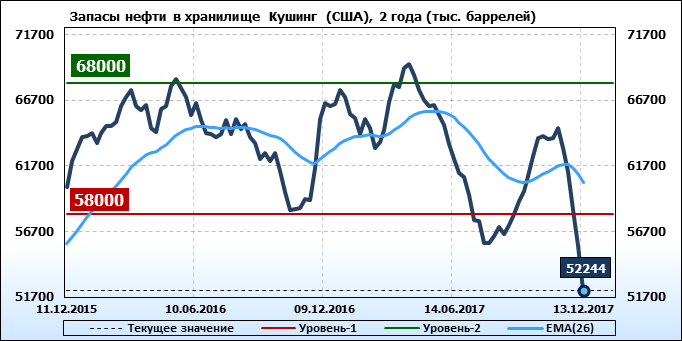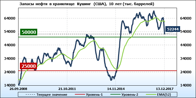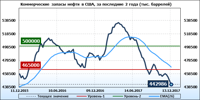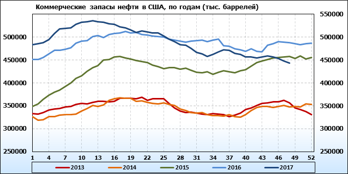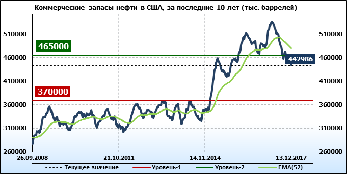 Коммерческие запасы нефти в США, EIA. Данные на 13.12.2017. Подробно