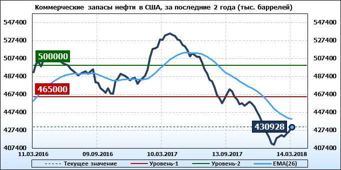 Коммерческие запасы нефти в США, EIA. Данные на 14.03.2018