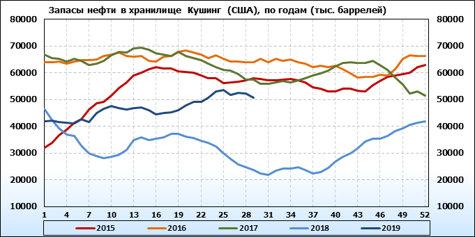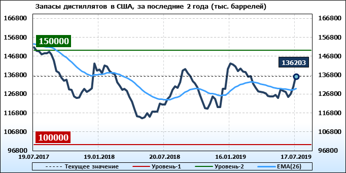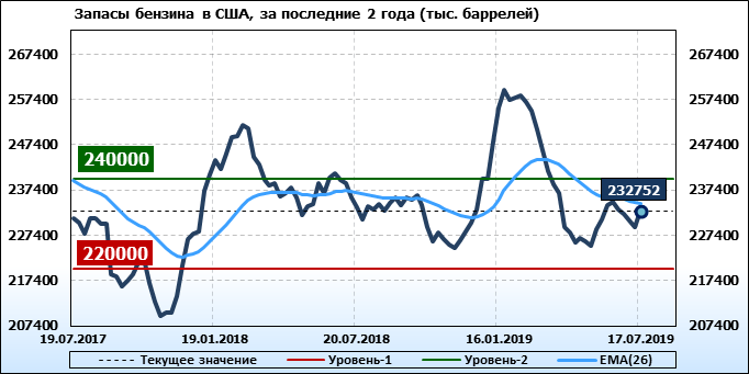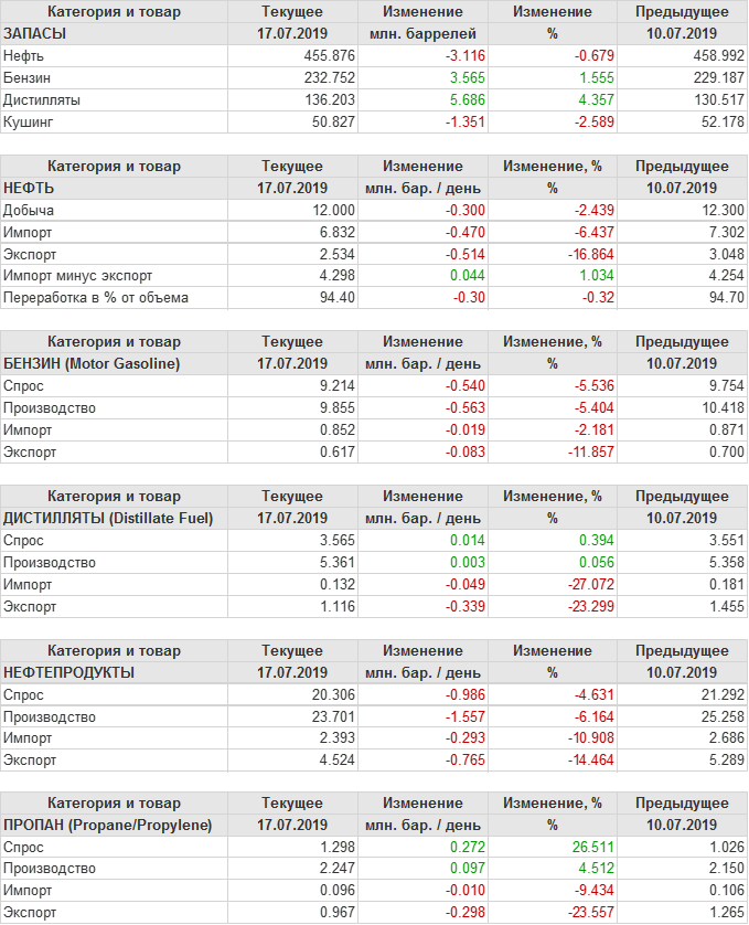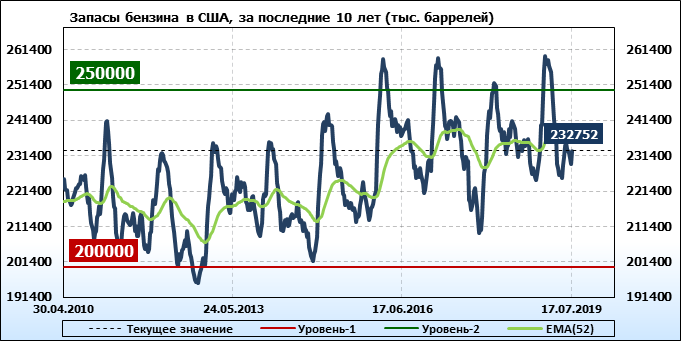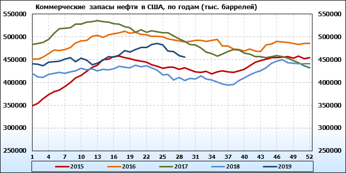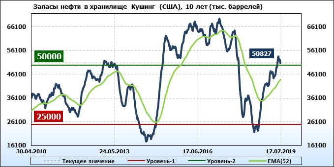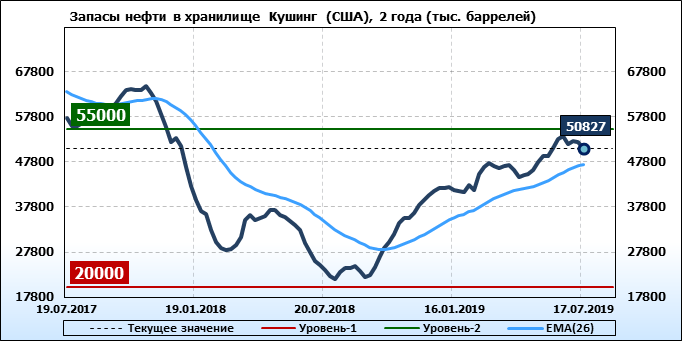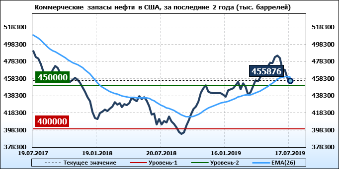 Коммерческие запасы нефти в США, EIA. Данные на 17.07.2019