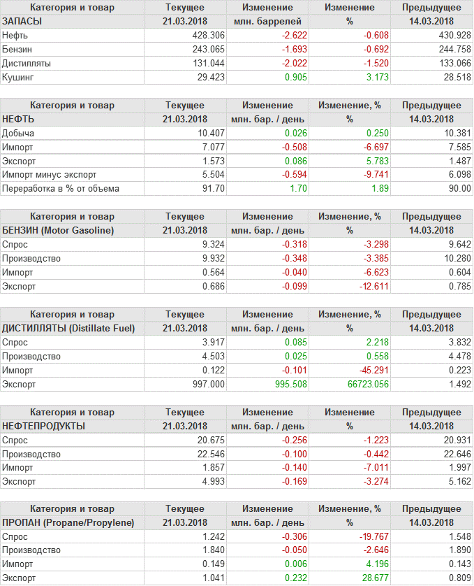 Коммерческие запасы нефти в США, EIA. Данные на 21.03.2018. Подробно