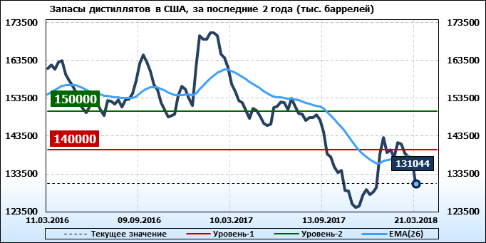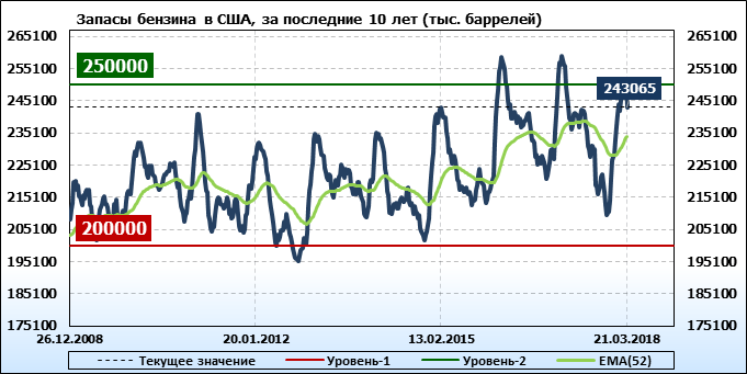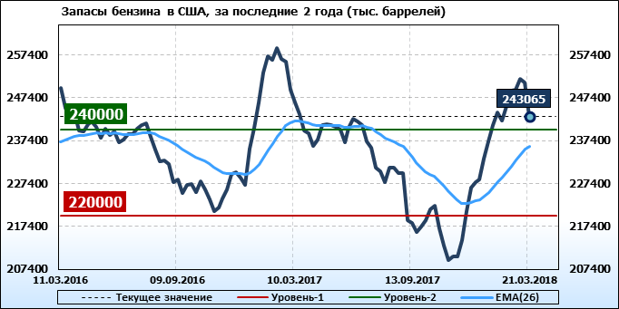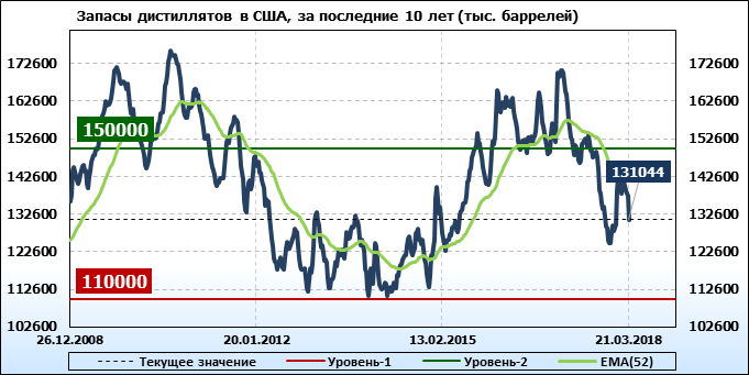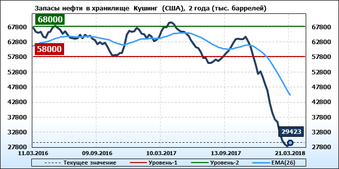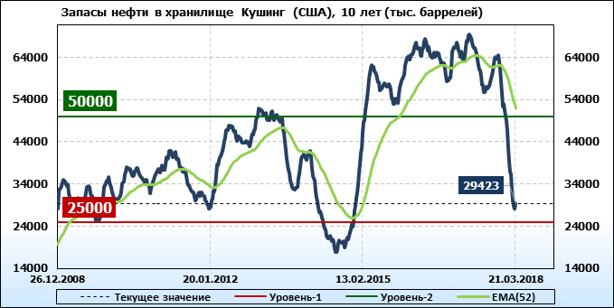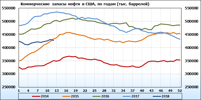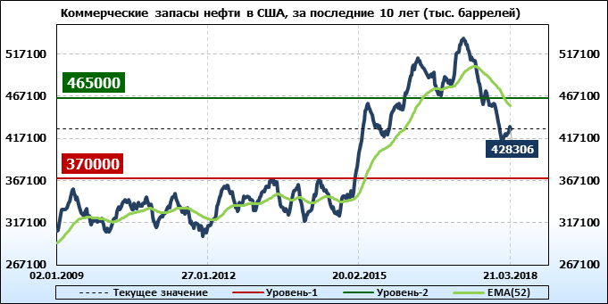 Коммерческие запасы нефти в США, EIA. Данные на 21.03.2018