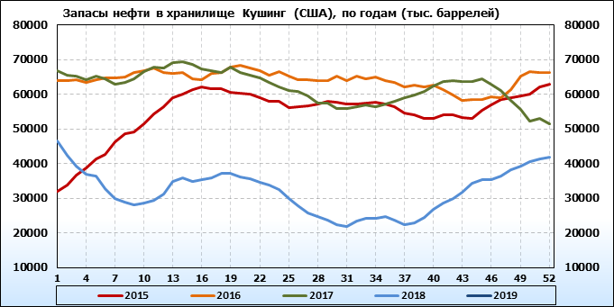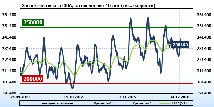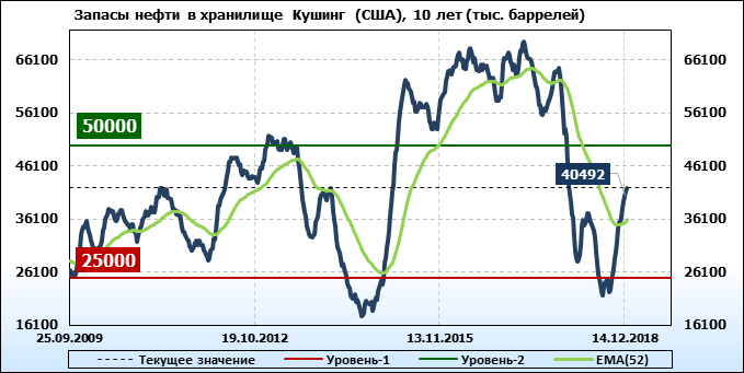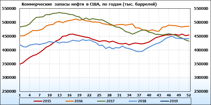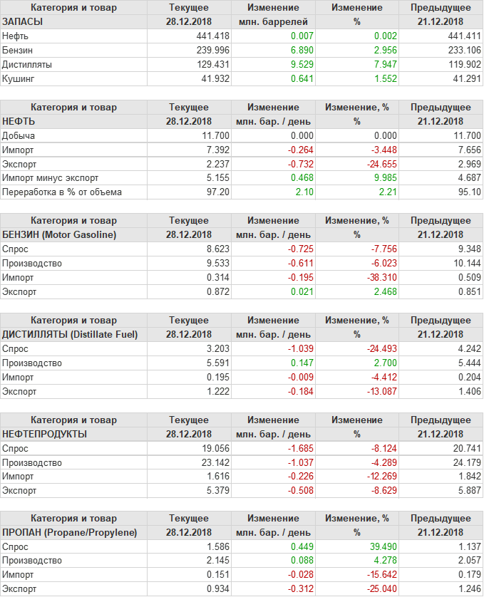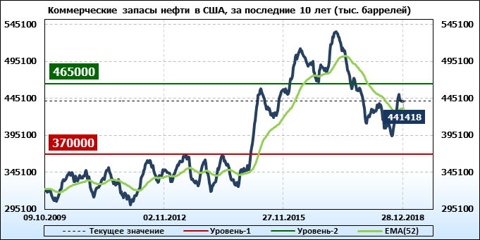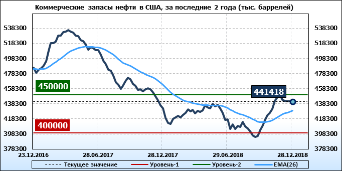 Коммерческие запасы нефти в США, EIA. Данные на 04.01.2019