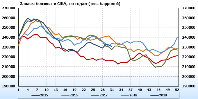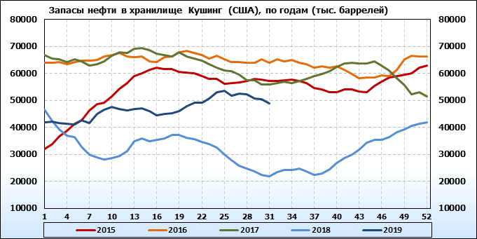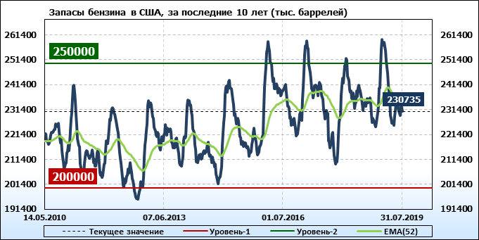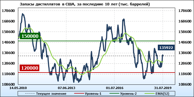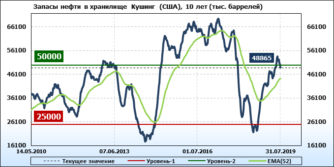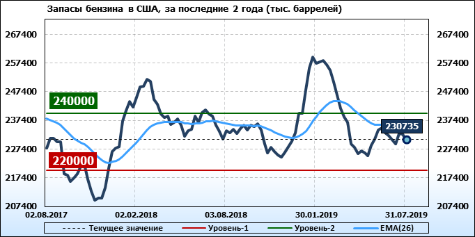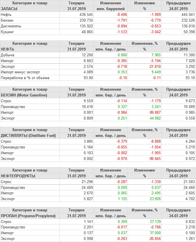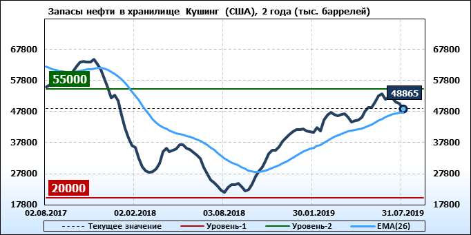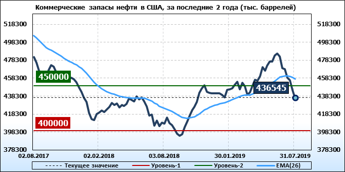 Коммерческие запасы нефти в США, EIA. Данные на 31.07.2019