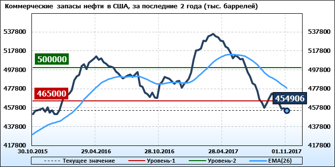 Коммерческие запасы нефти в США, EIA (U.S. Energy Information Administration). Данные на 01.11.2017