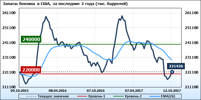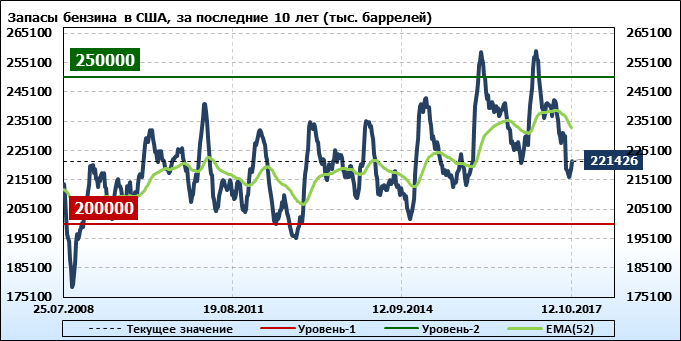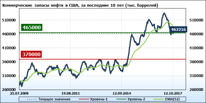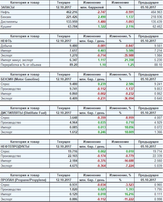 Коммерческие запасы нефти в США, EIA (U.S. Energy Information Administration). Данные на 12.10.2017. Подробно