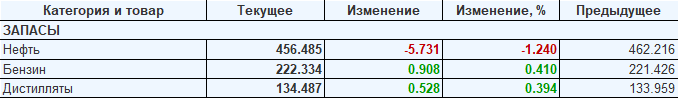 Коммерческие запасы нефти в США, EIA (U.S. Energy Information Administration). Данные на 18.10.2017