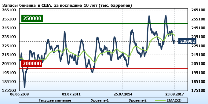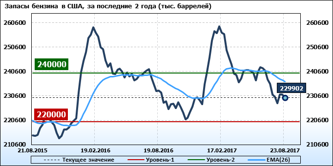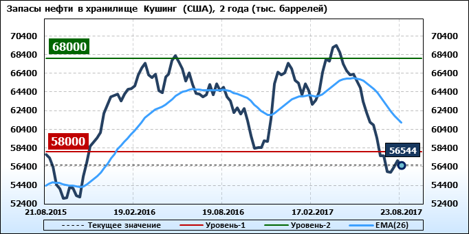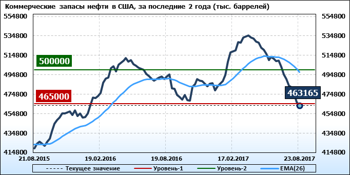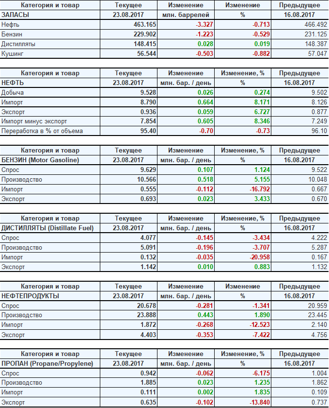 Коммерческие запасы нефти в США, EIA (U.S. Energy Information Administration). Данные на 23.08.2017. Подробно