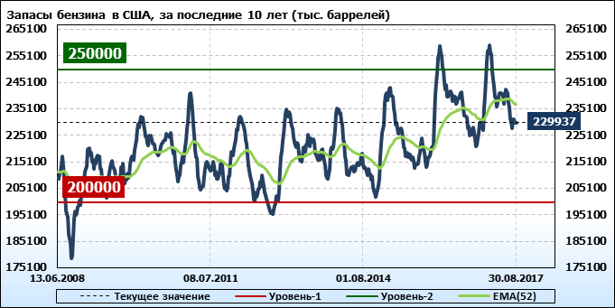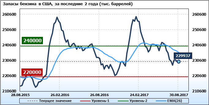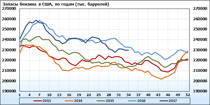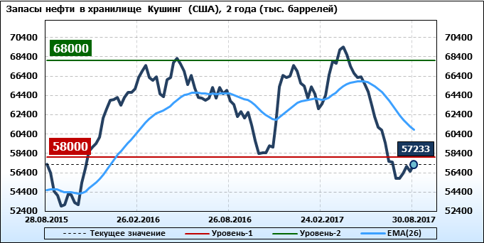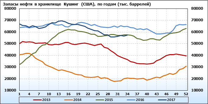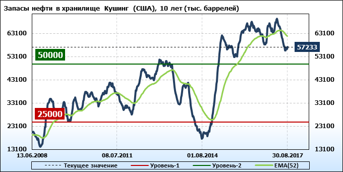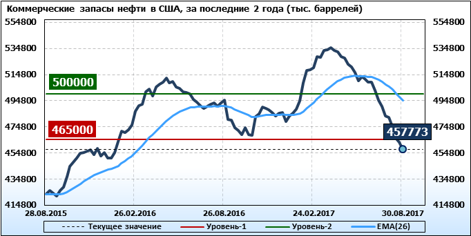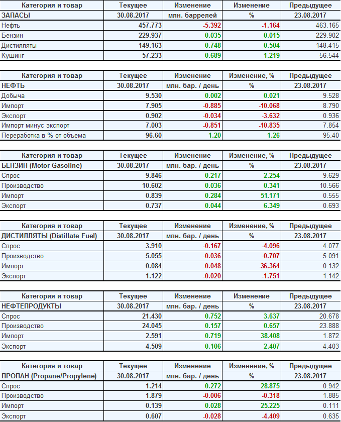 Коммерческие запасы нефти в США, EIA (U.S. Energy Information Administration). Данные на 30.08.2017. Подробно