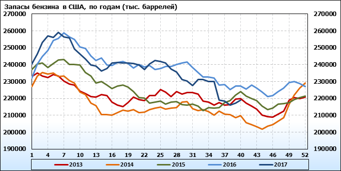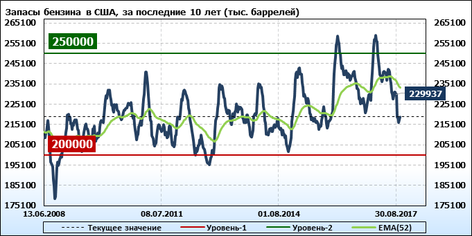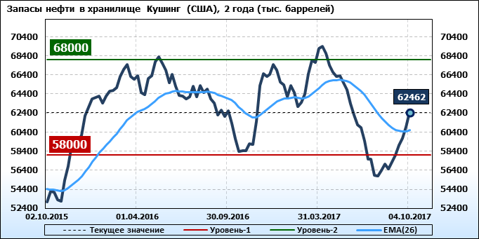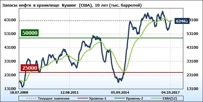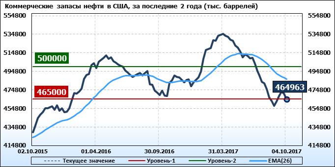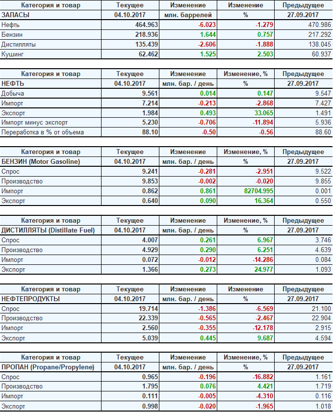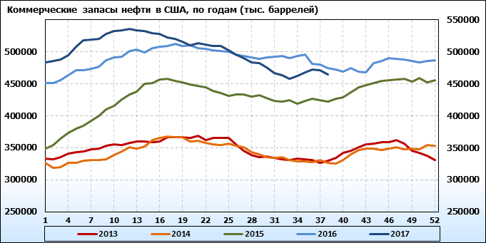 Коммерческие запасы нефти в США, EIA (U.S. Energy Information Administration). Данные на 4.10.2017. Подробно