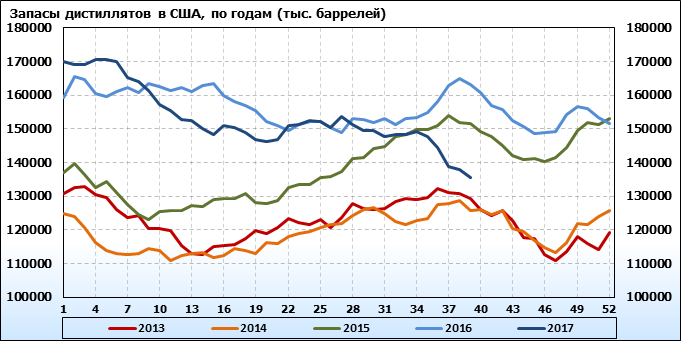 В недельном отчете Управления энергетической информации Минэнерго США (EIA) сказано, что запасы сырой нефти в США снизились на 6,023 млн баррелей за неделю, которая завершилась 29 сентября.