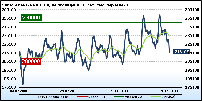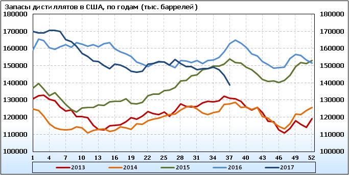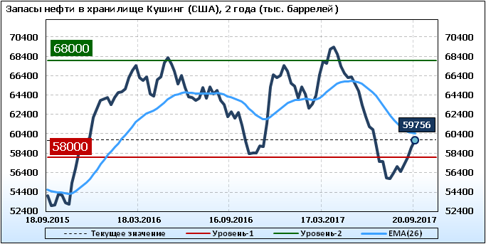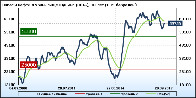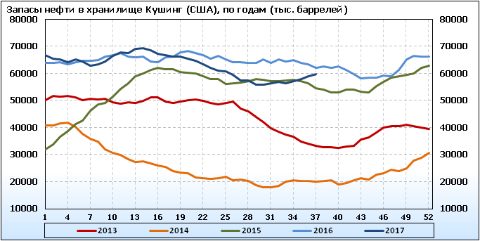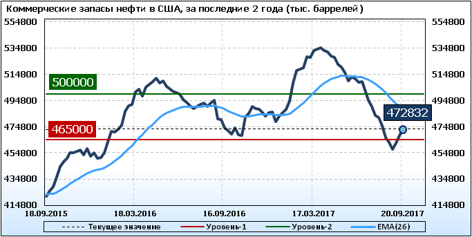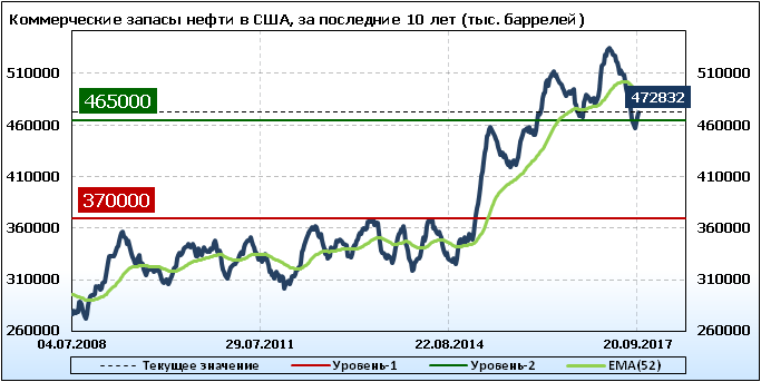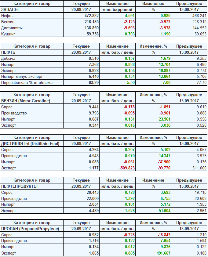 Коммерческие запасы нефти в США, EIA (U.S. Energy Information Administration). Подробно. Данные на 20.09.2017