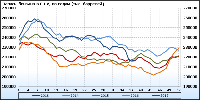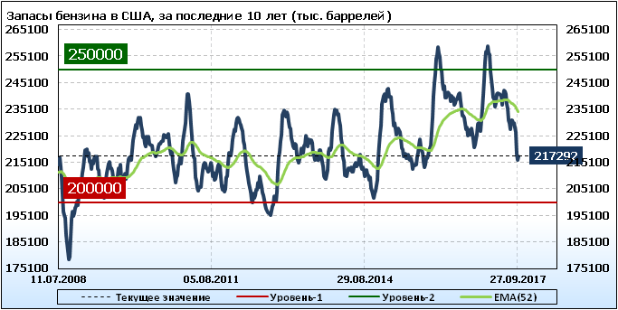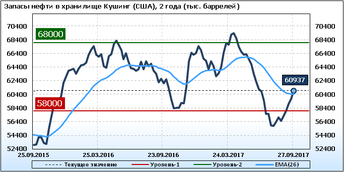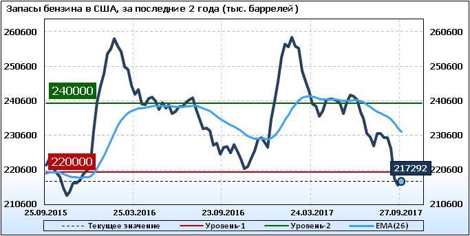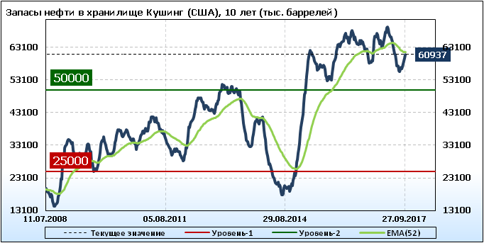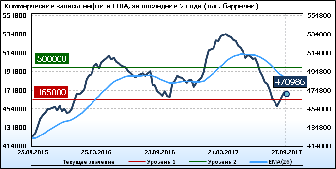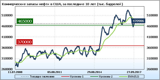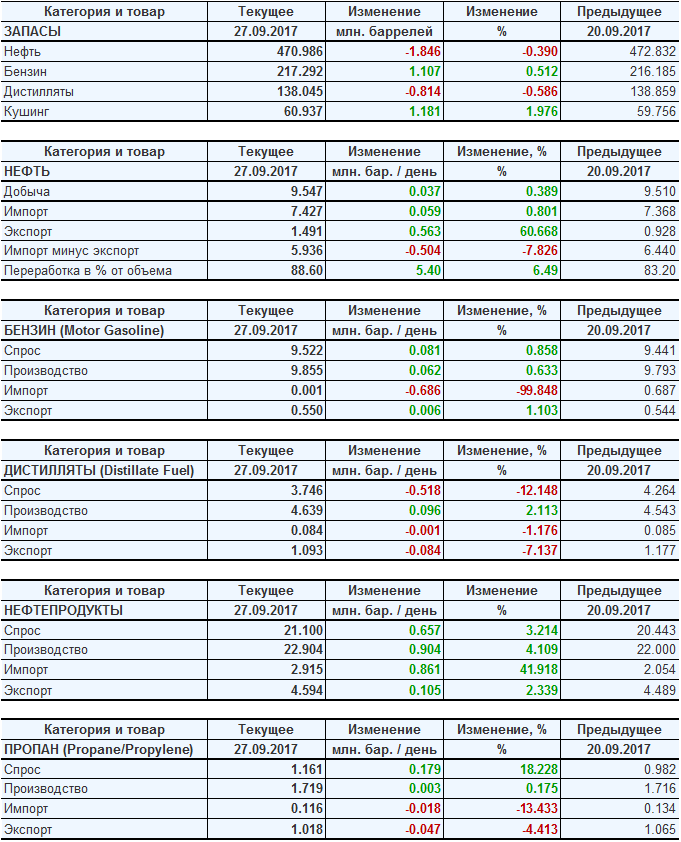 Коммерческие запасы нефти в США, EIA (U.S. Energy Information Administration). Подробно. Данные на 27.09.2017