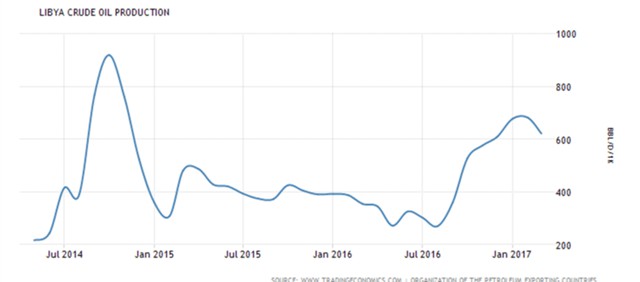 Национальная нефтяная корпорация Ливии только что объявила, что она увеличила добычу до двухлетнего максимума 796 тыс. баррелей в сутки.