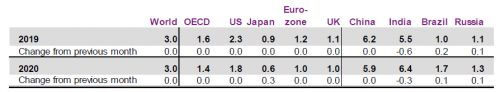Прогноз по темпам роста экономики в мире остался без изменений — 3.0% в 2019 и 2020 годах.