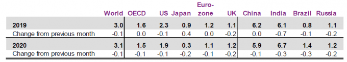 Учитывая трудности, с которыми столкнулись страны ОЭСР (в том числе, замедление темпов роста экономики в США), показатель роста ВВП в этих странах в 2020 году был пересмотрен в сторону снижения с 1.6% до 1.5%. Прогноз на 2019 год остался без изменений — 1.6%.