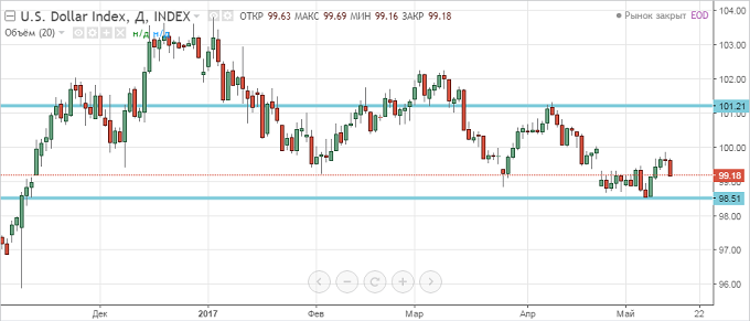 Рост по индексу американского доллара в начале недели сменился коррекцией в четверг и пятницу. В целом котировкам удалось закрепиться выше уровня 98,5 пунктов, который станет ближайшей поддержкой в будущем. Закрытие недели состоялось на отметке 99,18 пункта. Недельный рост составил 0,61 пункта или 0,62% (см. график 1).