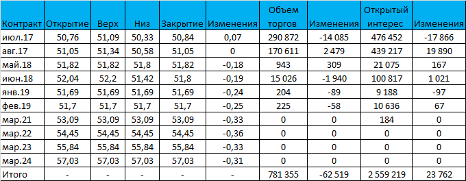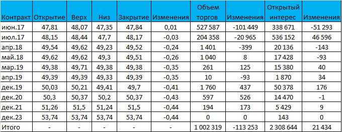 Таблица 2. – Изменение цен фьючерсных контрактов на нефть Brent на площадке ICE, за неделю с 8 по 12 мая 2017 года, $/b