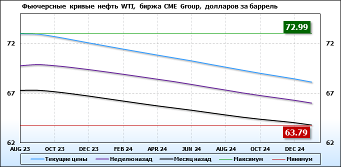 Нефть. Фьючерсные кривые на 10 июля 2023