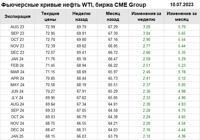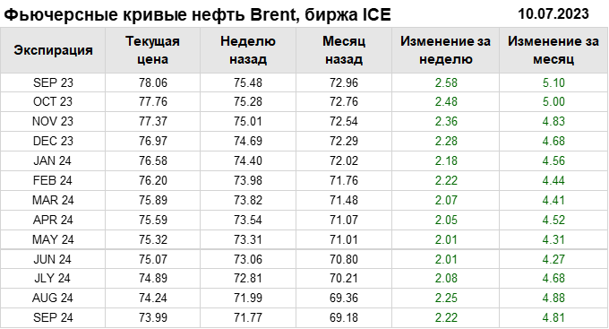 Нефть. Фьючерсные кривые на 10 июля 2023