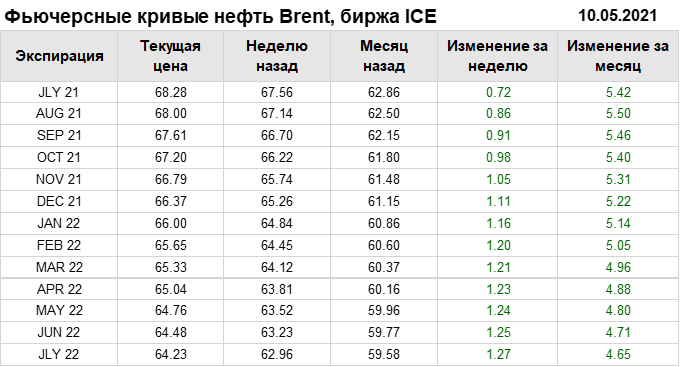 Нефть. Фьючерсные кривые на 10 мая 2021