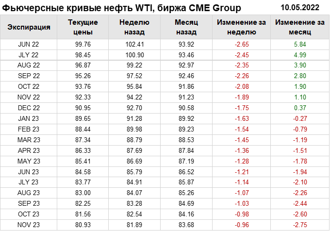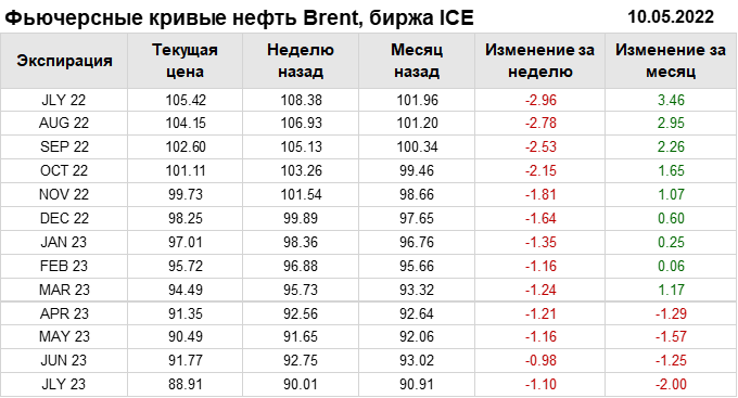 Нефть. Фьючерсные кривые на 10 мая 2022