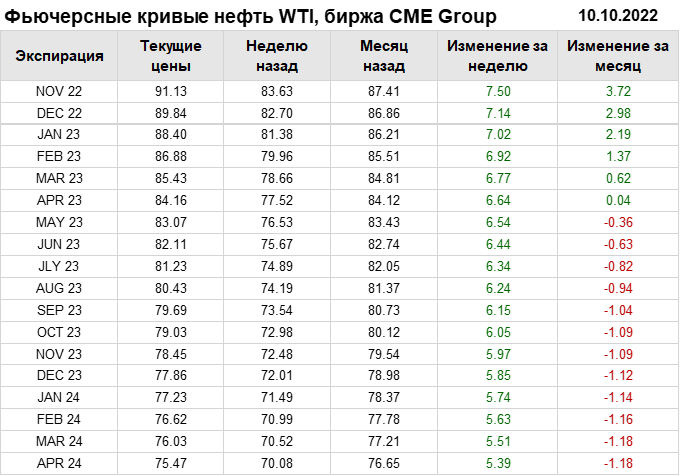 Нефть. Фьючерсные кривые на 10 октября 2022