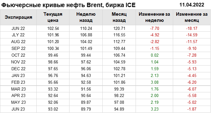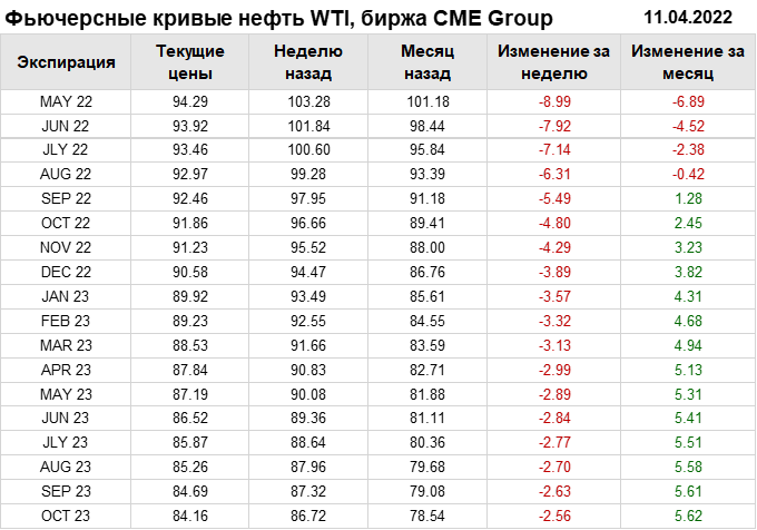 Нефть. Фьючерсные кривые на 11 апреля 2022