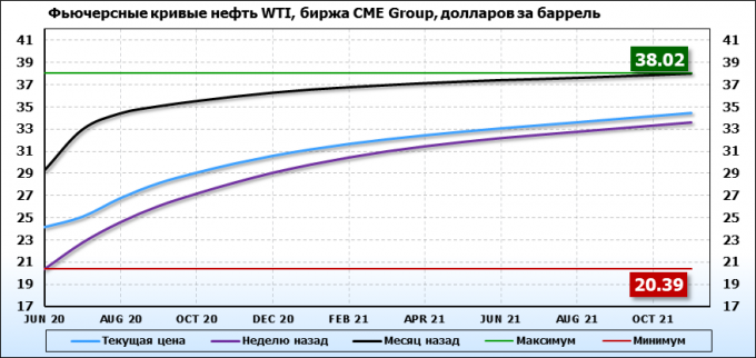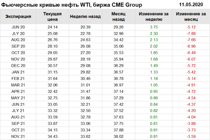 Нефть. Фьючерсные кривые на 11 мая 2020