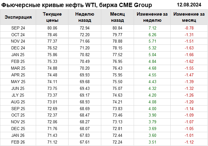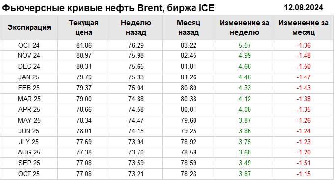 Нефть. Фьючерсные кривые на 12 августа 2024
