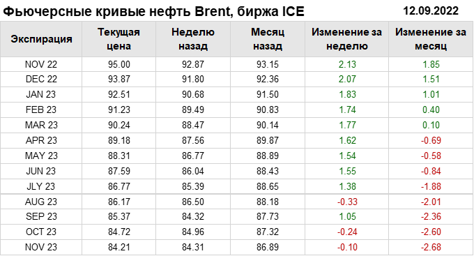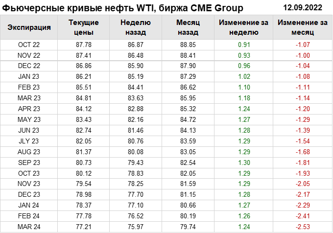 Нефть. Фьючерсные кривые на 12 сентября 2022