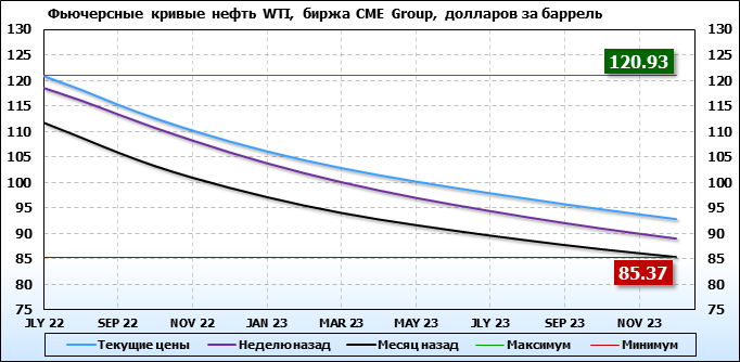 Нефть. Фьючерсные кривые на 13 июня 2022