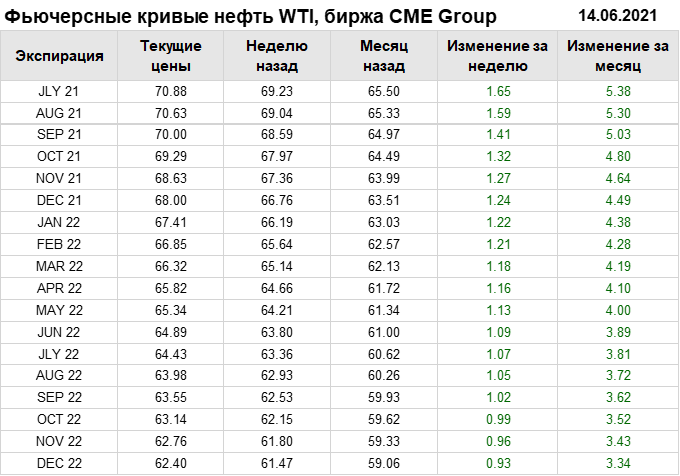 Нефть. Фьючерсные кривые на 14 июня 2021