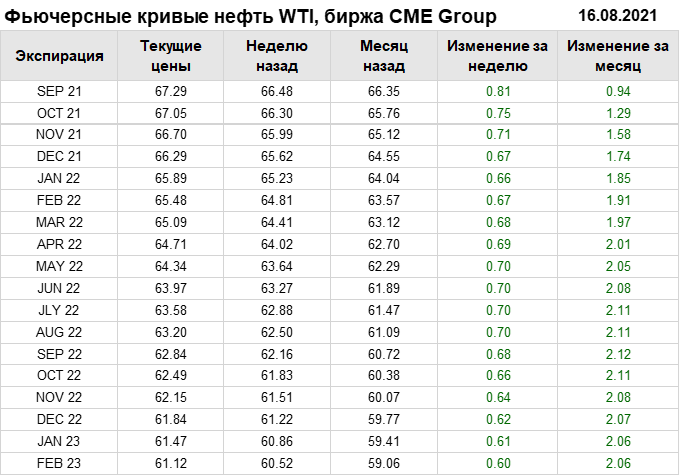 Нефть. Фьючерсные кривые на 16 августа 2021