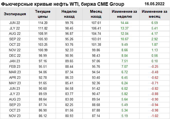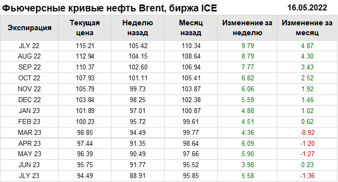 Нефть. Фьючерсные кривые на 16 мая 2022