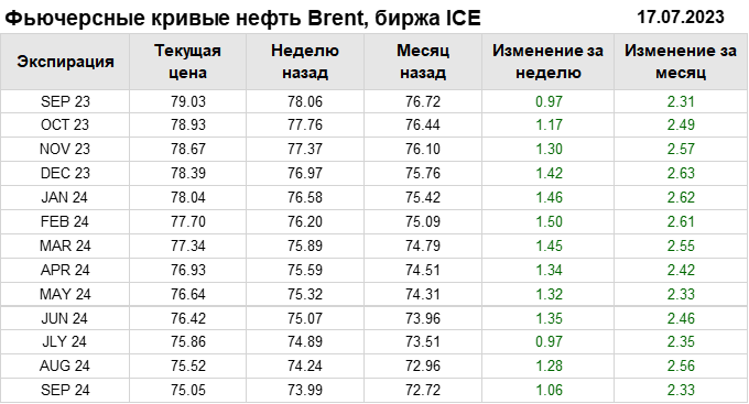 Нефть. Фьючерсные кривые на 17 июля 2023