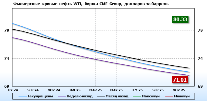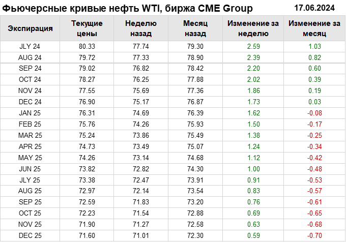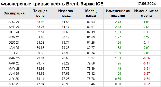 Нефть. Фьючерсные кривые на 17 июня 2024