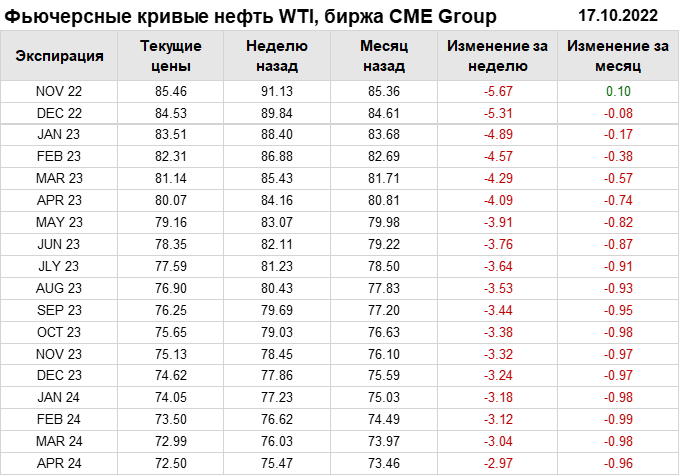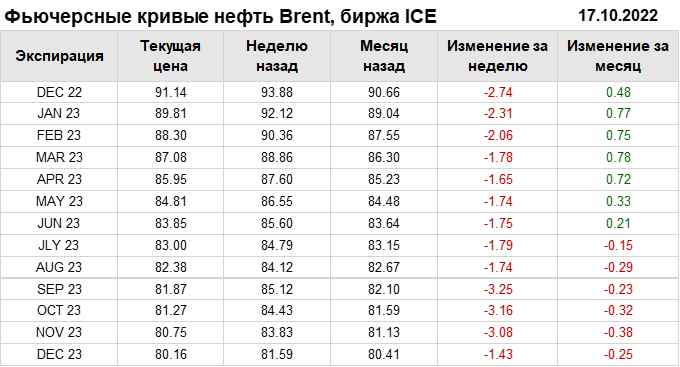Нефть. Фьючерсные кривые на 17 октября 2022