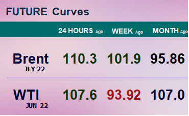 На 18.04.22 стоимость нефти марки Brent на бирже ICE по контракту JUN 22 составила 111.6 долларов за баррель. За прошедшую неделю стоимость нефти марки Brent выросла на 9.06 $/баррель. Как мы видим на графике, фьючерсная кривая имеет периоды, когда более дальний фьючерс дешевле ближнего. Состояние бэквардации наблюдаем на следующих контрактах: JLY 22; AUG 22; SEP 22; OCT 22; NOV 22; DEC 22; JAN 23; FEB 23; ; APR 23; MAY 23; JUN 23. Таким образом, трейдеры предполагают, что возможно превалирование предложения над спросом в указанные периоды, если рынок будет находиться на данных ценовых уровнях.